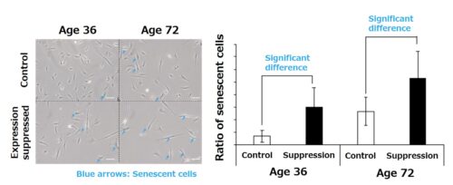 On the other hand, it is not easy to evaluate cell changes due to aging. When comparing cells of people of different ages, there are not only genetic differences but also large individual differences due to lifestyle habits such as the degree of ultraviolet radiation exposure, eating and drinking habits, and it is difficult to separate them from the effects of aging. Therefore, we used a sequence of dermal fibroblasts collected from the same person over a period of 35 years to enable minimization of such impacts in order to search for new findings on the excessive accumulation of senescent cells due to aging.