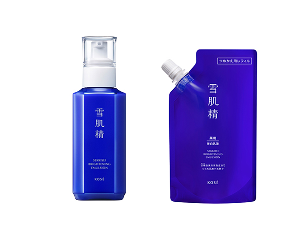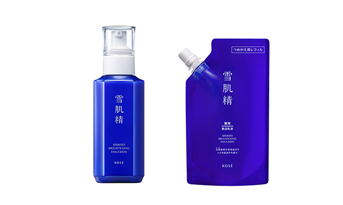 The “Medicated SEKKISEI Brightening Emulsion” from our skin care brand “SEKKISEI” contains KOSÉ's original "licorice derived active ingredients" to simultaneously prevent blemishes and care for skin roughness. In addition, the simultaneous release of refills allows for both continued ease of use and environmental friendliness. By using refills, the amount of waste plastic can be reduced by about 80%*.