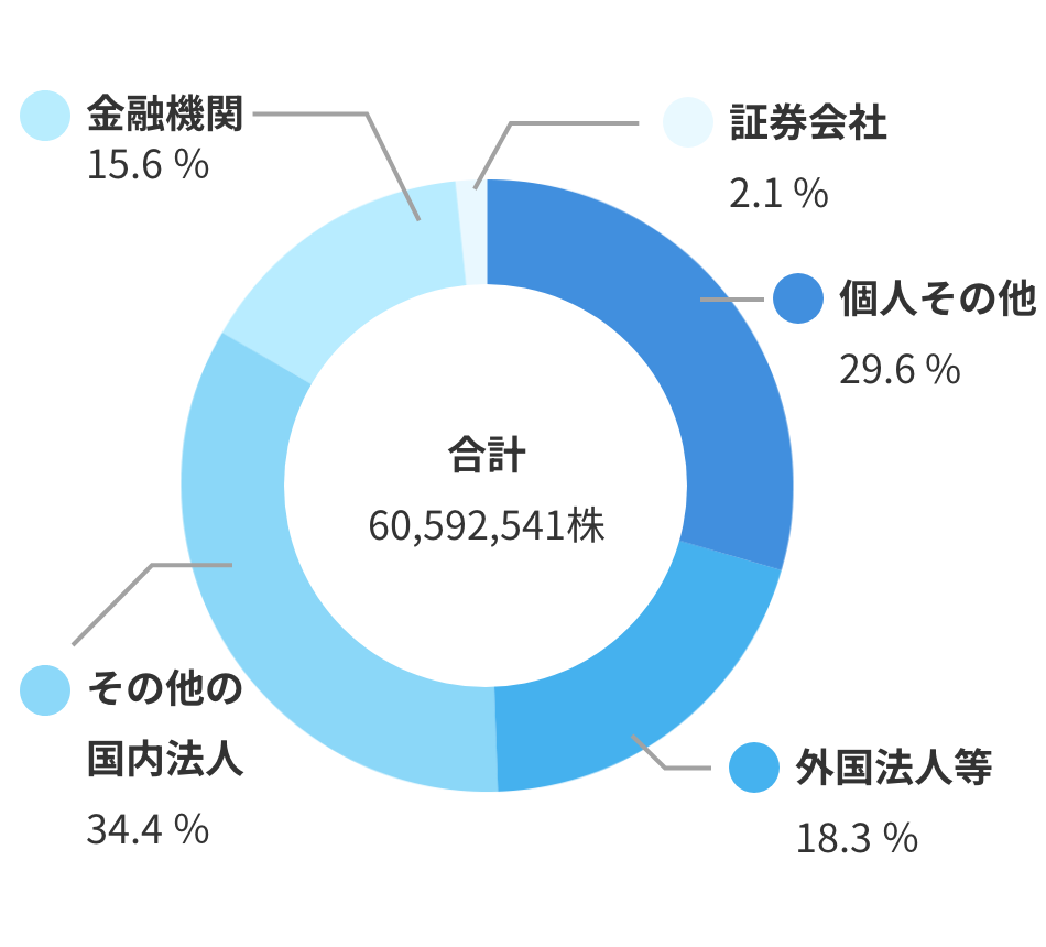 (2)証券保管振替機構失念株管理口分の1名3,810株はその他の国内法人に含めています。