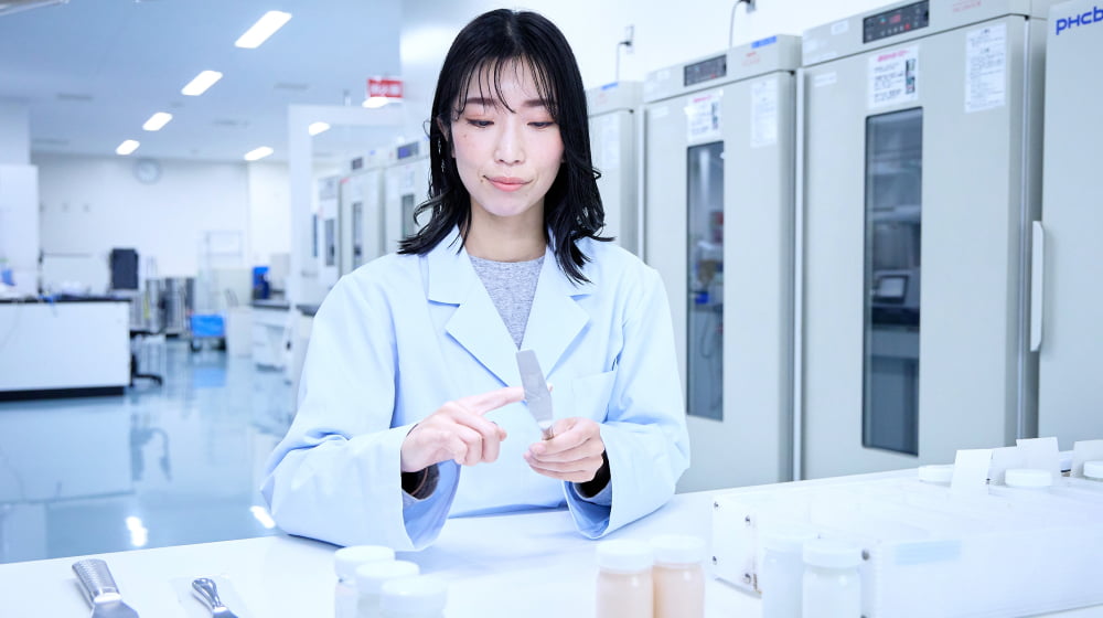 「使用される原料成分が規定どおりに含まれているか」「完成した化粧品が厳しい検査規格をクリアし、お客さまが安全・安心に使える状態に保たれているか」といった観点で、化粧品に使用される原料や出来上がった製品の検査・分析などを行って、品質を保証する重要な業務です。