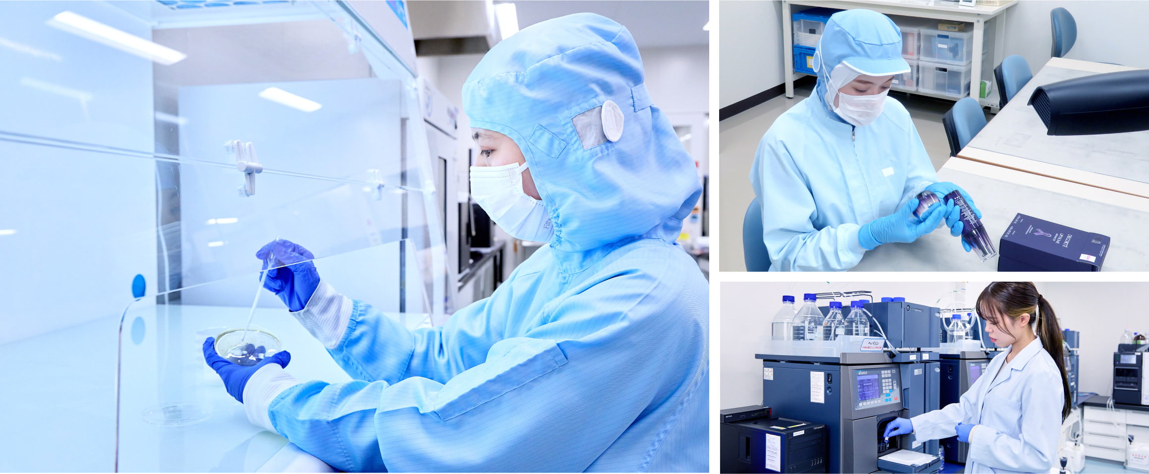 化粧品に使用される原料や出来上がった化粧品の安全・安心な品質が保たれているかなど検査・分析等にて保証する重要な業務を行っています。将来は生産環境や原料メーカーの品質監査、品質管理システムの見直しや改訂、製品クレーム調査、商品ライフサイクル試験、薬事申請等の品質保証業務で活躍していただきます。