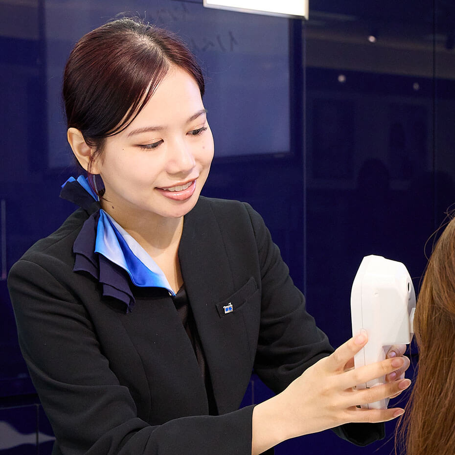 私の誰にも負けない強みは、「明るい笑顔」と「丁寧な接客」だと思います。カウンセリングをする上でお客さまに信頼され任せていただくことはとても大事だと思っています。常にお客さまの立場に立って明るく振る舞い、「来て良かった」「この人にやってもらって良かった」と満足してお帰りいただけるように心がけています。