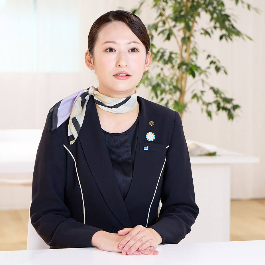 私はトレーナーとしてビューティコンサルタントのスキルアップのための研修やトレーニングの運営、お取引先さまに向けた化粧品セミナーの実施などを担当しております。お客さまから選んで頂け、喜んでもらえる接客を実現するために、店頭のビューティコンサルタントにはどのようなスキルや知識が必要なのかを自身の現場での経験をもとに、具体的に考えながら日々業務に取り組んでおります。また、キャリアの浅いビューティコンサルタントへは直接店頭にてOJTフォローを行い、自信を持ってお客さまに接することができるようサポートをしています。