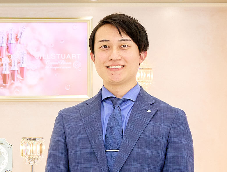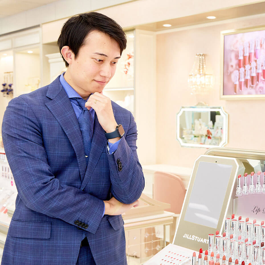「JILL STUART」というブランドの担当営業として活動しています。JILL STUARTの持つ独自の世界観を守りながら全国の流通様を通してブランディングを行うので、主な業務としては、店舗営業窓口、全国の美容スタッフのマネジメント、拠点戦略の策定、および推進となります。拠点、売り場、販促、接客までどうすれば一貫してJILL STUARTの世界観をお客さまにお届けできるかということを常に意識して取り組んでいます!