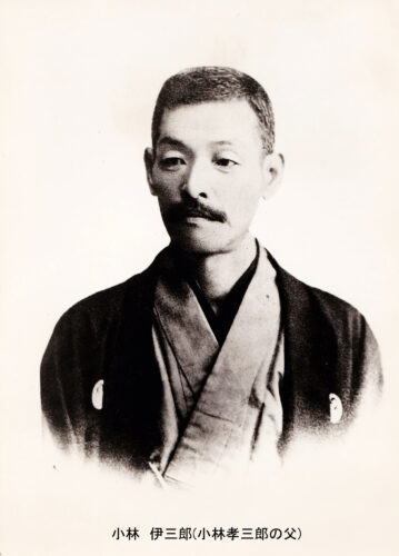 孝三郎の父伊三郎は、孝三郎が子供の頃、茨城県の岩井市(現在の坂東市)で、呉服商の番頭として活躍していましたが、そのお店の跡継ぎが成人したのを機会に退き、タバコの製造工場をかなり手広く営むようになります。ところがまもなくして、タバコは国の専売事業となったため、生産を中止せざるを得なくなってしまいます。しかし、商才にめぐまれただけでなく、進歩的な考えを持っていた父は、次に醤油の製造をはじめ、たちまち事業化に成功しています。父伊三郎は、その呉服商で多くの番頭を育て、独立させてきましたが、そのうちの一人に伊三郎の縁で奉公した甥の小室新之助という人物がいます。やがて、伊三郎は新之助を誘い、共同出資で東京に化粧瓶、薬瓶を販売する会社を設立しています。