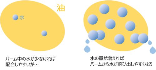 森山 よくぞ聞いてくれました!今回の“バームなのにみずみずしい”を実現するためには油の中にたくさんの水を抱え込ませなくてはなりません。もちろん、水の量が多ければそれだけみずみずしさを強く感じられます。そのため、水がほとんど含まれない通常のバームから、どんどん水の量を多くしていきました。しかし、ここで起こった問題が「水もれ」でした。