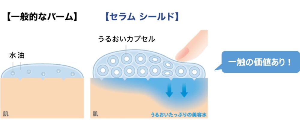 森山 やっぱり、市場を良く知る商品開発のみなさんの声はありがたかったです!その中で「こってりした固形バームの中から水がたくさん出てきたら面白いんじゃない?」「なかなか、そういうのってないのでは?」となり、「セラム シールド」の原型の開発がスタートしました。