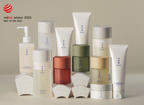 なかでもプラスチックの成型を担当するマテリアル事業室では、プラスチックの繊細なカッティングをしたり、リサイクル素材をプラスチックに混ぜ込んで化粧品容器に仕上げたりと、非常に難しい手法ではありますが、それを実現できる技術を持ち合わせています。先日、「Red Dot Award」のプロダクトデザイン部門において 「雪肌精BLUE」が最高位の「Best of the Best」を初受賞しましたが、この商品の蓋は、このマテリアル事業室で技術開発、生産を行いました。『雪肌精』の原料として使用しているハトムギエキスを製造する過程で発生する「ハトムギのもみ殻」を入れ込み、瓦型の特徴的なデザインに仕上げたものになります。この技術はとても難しくてチャレンジングだったのですが、具現化できたのは当社が保有する高い技術力があってこそと自負しています。