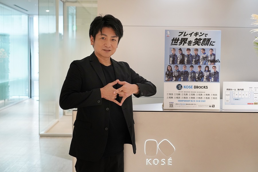 ※KOSÉ 8ROCKSの「8」をイメージしたハンドサインのポーズ。この「8」には、競技が8名のスタメンで構成されていることに加え、数字の8を無限(∞)と見立て、「無限の可能性を秘めたチームである」という意味も込められています。