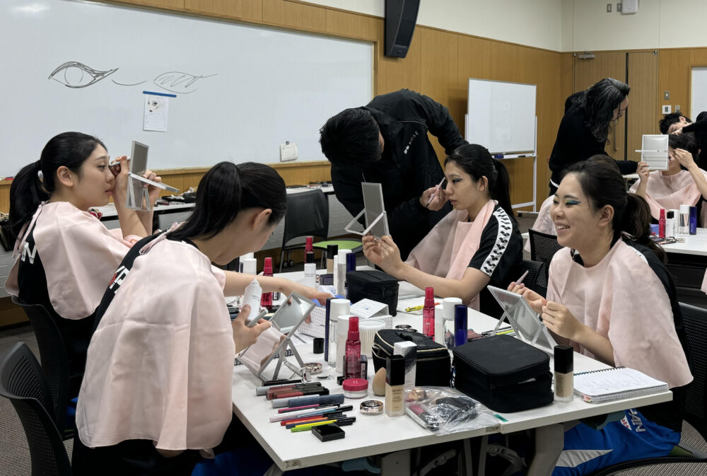 石井 一般的なメイクは自己表現としてメイクを楽しむことですが、スポーツメイクは『汗・水に強く崩れにくいこと」、そして『表現力を高めること」を重視しています。衣装や曲、演じるキャラクターなどの世界観に合わせ、色使いやメイクの入れ方を工夫して表現力を高め、選手が自信を持って最高のパフォーマンスを発揮できるようサポートしています。