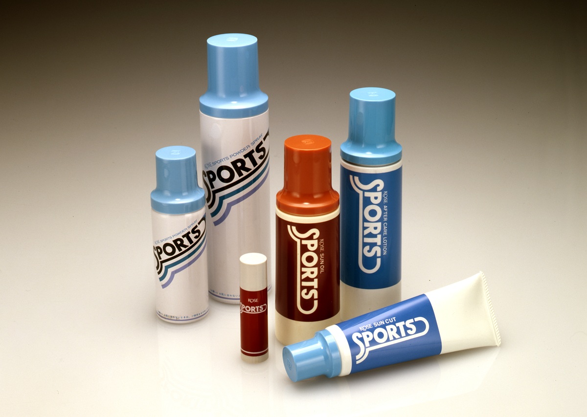 1970年代に入ると、スポーツは一部のアスリートや学生だけのものではなくなりました。現上皇・上皇后両陛下の出会いに象徴されるテニスブームは、軽井沢を聖地として全国へ波及。白いウェアに身を包み、健康的でアクティブな休日を謳歌することが、若者たちの憧れのライフスタイルとなったのです。こうした『日常の中で美しく汗を流す』という新しい文化の広がりを、コーセーはいち早く捉えていました。1976年、強い太陽を浴びるレジャーに向けたシリーズ「スポーツ」を発売し、化粧品分野で「スポーツ/SPORTS」を商標登録しています。コーセーにとって、スポーツは単なる流行ではなく、美の新しい領域だったのです。