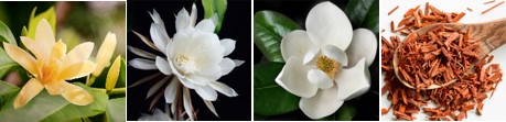 金香木、月下美人、マグノリアなどの花々を中心とした植物をブレンド。清らかな気品にあふれ、心やすらぐフレッシュフローラルムスキーの香りです。