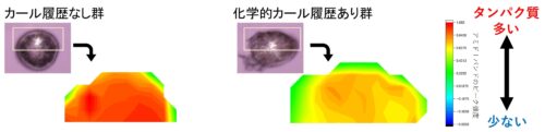 図2 カール履歴なし群と化学的カール履歴あり群のまつ毛内部のタンパク質分布