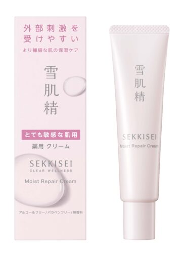 同時に、同じく「敏感・低刺激タイプ」から、新生児から使える低刺激処方の敏感肌用保湿クリーム「雪肌精 クリアウェルネス モイストリペア クリーム」を発売します。肌あれ防止の有効成分グリチルリチン酸ジカリウムを配合し、肌あれを効果的に防ぎ健やかな肌へみちびきます。なめらかに伸び広がる、まろやかでしっとりとした使い心地で、肌の摩擦感を軽減したやさしいお手入れを叶えます。顔にも体にも使用でき、これ1品で毎日の保湿ケアを完了させることができます。