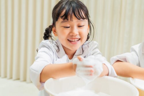 ②「洗顔の大切さを学ぼう!もちもち泡体験」