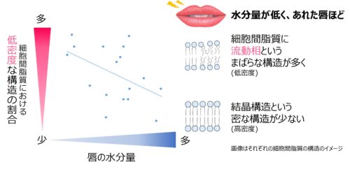 唇は肌よりも細胞間脂質の密度が低く、あれやすさにも繋がることを発見