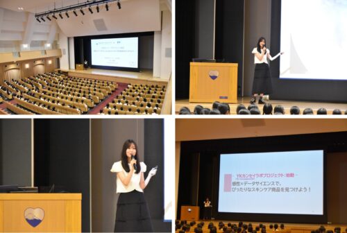 株式会社コーセー(本社:東京都中央区、代表取締役社長:小林 一俊)は、2025年7月16日に山脇学園中学校・高等学校(所在地:東京都港区)の女子中学3年生 280名に向けて、化粧品×データサイエンス講座を開催しました。講座では、当社のデータサイエンティストから化粧品開発におけるデータサイエンスの応用事例を紹介するとともに、生徒たちが取り組む研究課題「感性とデータから、みんなにぴったりの化粧品をみつけよう」を提示しました。生徒たちは今後の授業のなかで、スキンケア商品を実際に触りながら、自分たちの感性とともにデータサイエンスを学んでいきます。