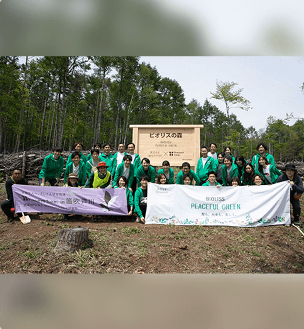 「ビオリス」の収益の一部を寄附し、南アルプス市と連携・協力しながら植樹活動などの環境保全活動を推進しています。
