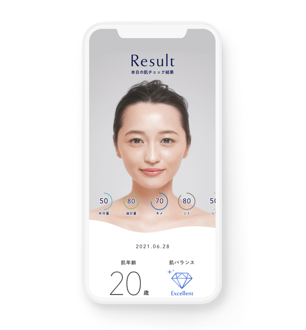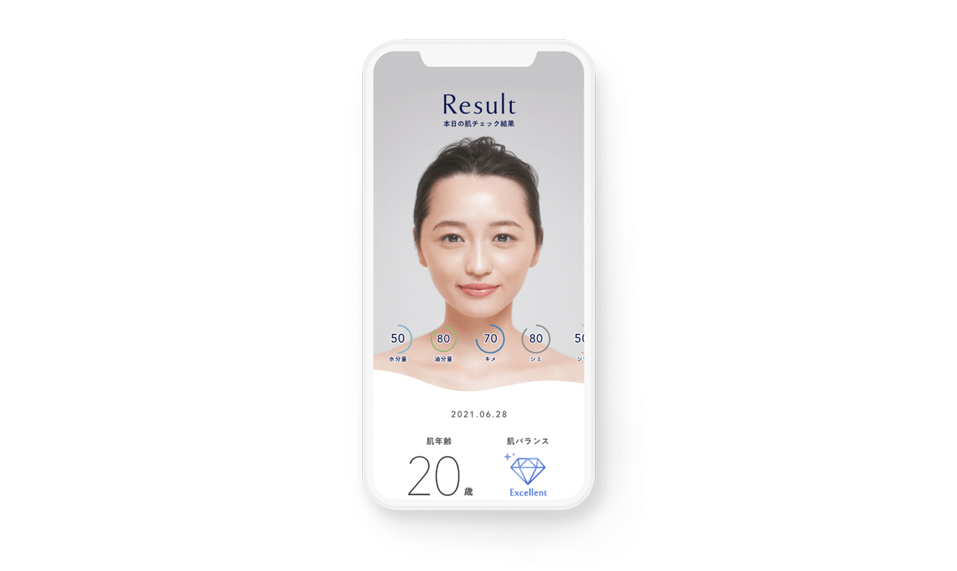 アクセシビリティに配慮し、自宅からでも「肌状態」「未来のシワ」「メイク嗜好性」のチェックができ、肌の状態、顔の特徴から最適アイテムやお手入れ方法、メイク提案などが受けられます。