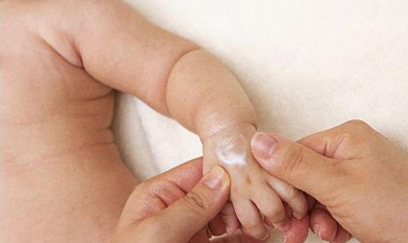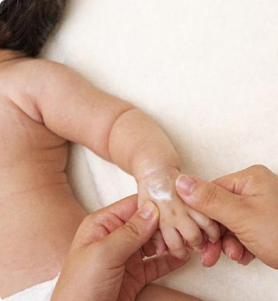 コーセーでは医療機関と共同研究し、当社のスキンケア製剤が生後3日以降の新生児でも安全に使用でき、さらに4ヶ月継続するとからだの各部で水分量が増加することを、医療機関と共同で確認しました。