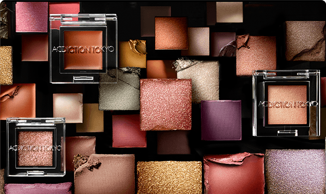 TOKYOから世界へ発信する「ADDICTION」の「ザ アイシャドウ」では、この開発技術を応用しています。あらゆる人種・肌色を加味した色設計を実施し、ベース開発技術と組合わせグローバルに自分らしいスタイルを求める全ての人に対して、幅広い質感や色味の提供を可能にしています。