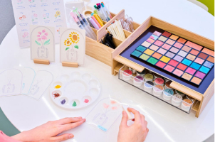 コーセーでは、役目を終えた化粧品を価値ある資源として活用するアップサイクルの取り組みを進めています。研究所における品質追求・品質管理の過程で余ったアイシャドウなどの色のついた粉体のメイクアップ化粧品を、株式会社モーンガータに提供し、絵具や印刷用インキ、ヘアアクセサリー、ボールペンなどに蘇らせ、お客様や生活者の皆様とのコミュニケーションに活用しています。
